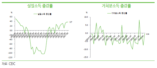 ● 실질소득은 전년 동월 대비 3.7% 증가한 반면 가처분 소득은 전년 동월 대비 0.4% 감소