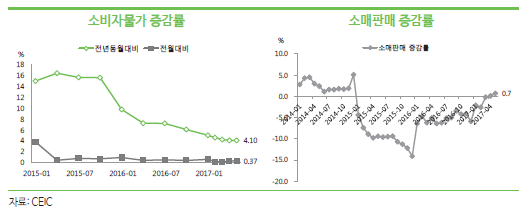 ▶ 5월 소비자물가는 4.1% 상승, 소매판매는 0.7% 증가