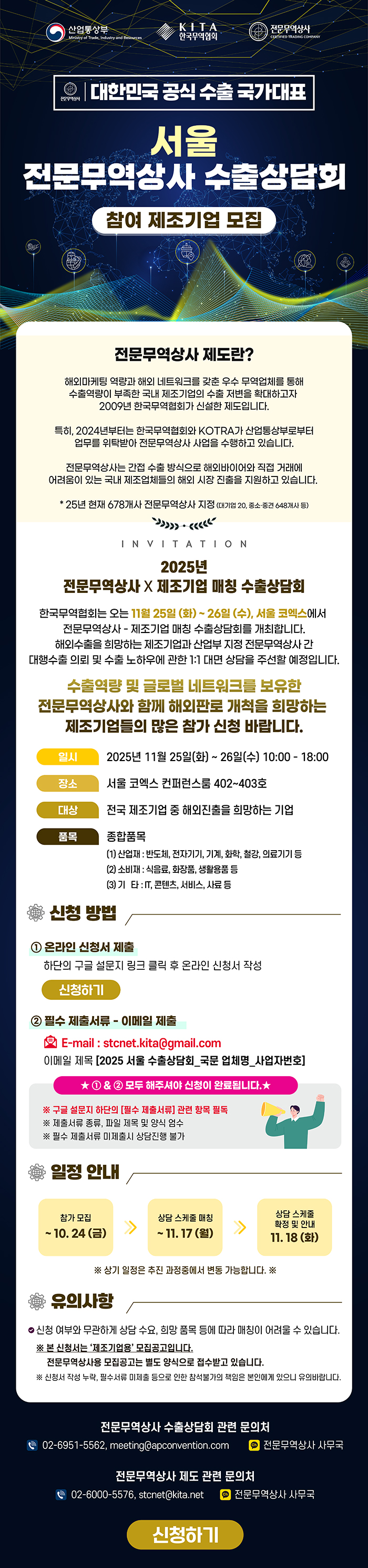 2025년 서울 전문무역상사 수출상담회 참가 제조기업 모집 (~10/24)