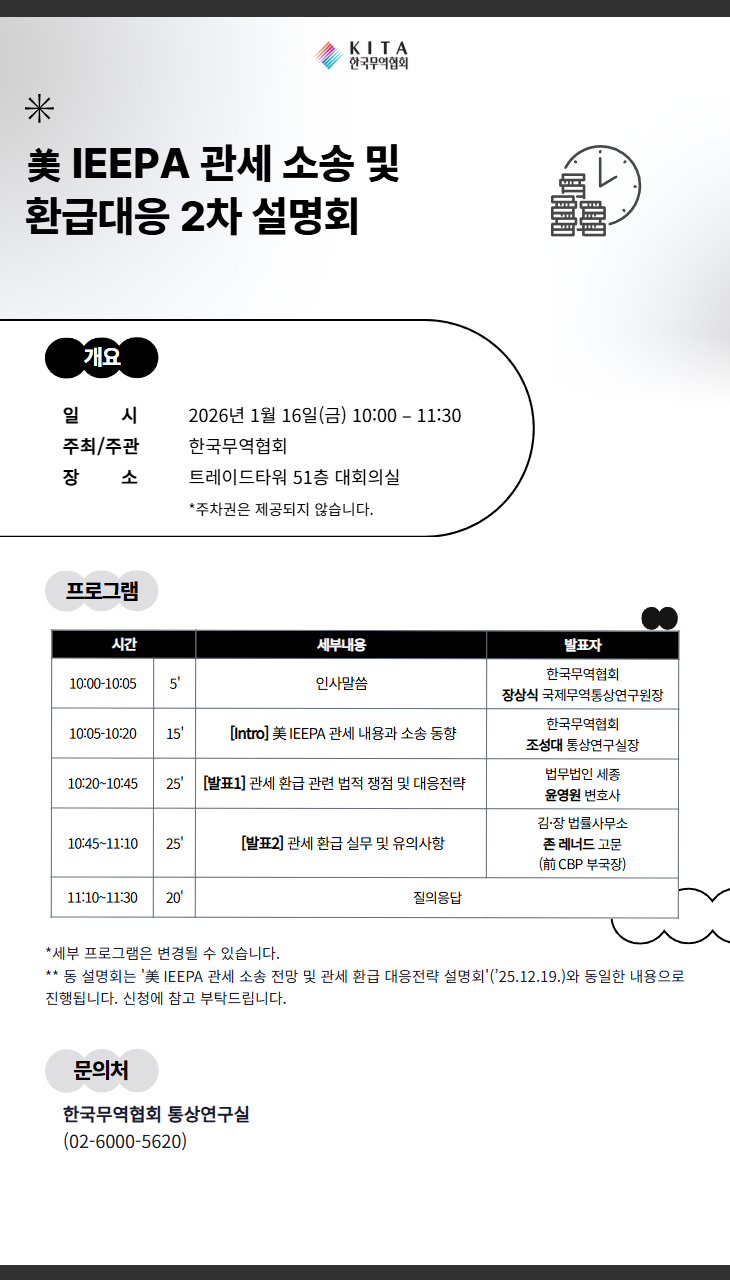 美 IEEPA 관세 소송 및 환급대응 2차 설명회(1/16, 금)