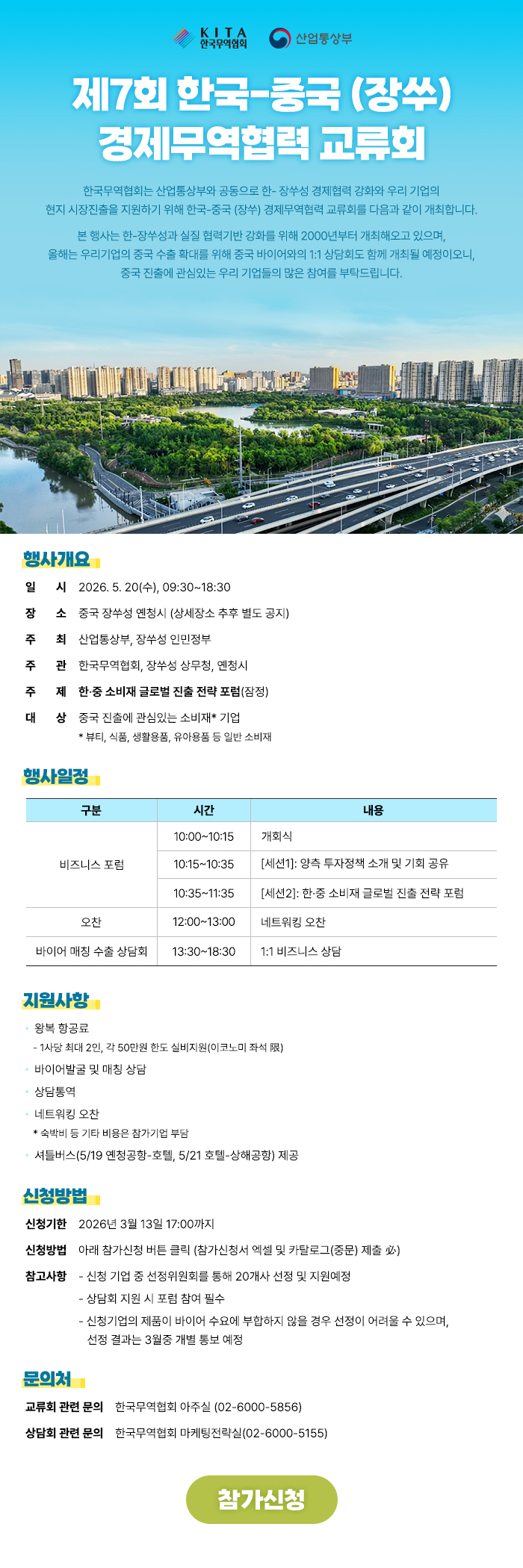 제7회 한국-중국 (장쑤) 경제무역협력 교류회 참가 기업 모집