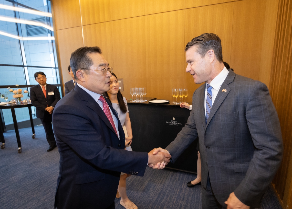 동 간담회에는 한국무역협회 구자열 회장, 조이 사쿠라이(Joy Sakurai) 주한 미국대사관 부대사, 이휘령 세아제강 부회장, 최명배 엑시콘 회장, 박혜린 옴니시스템 대표이사, 이동섭 일진그룹 부회장 등 무역협회 회장단과 인디애나주 진출 기업 대표 등 20여 명이 참석했다.