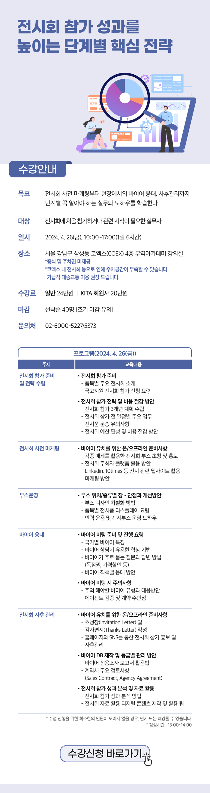 [무역아카데미] 전시회 참가 성과를 높이는 단계별 핵심 전략(4/26) 수강생 모집
