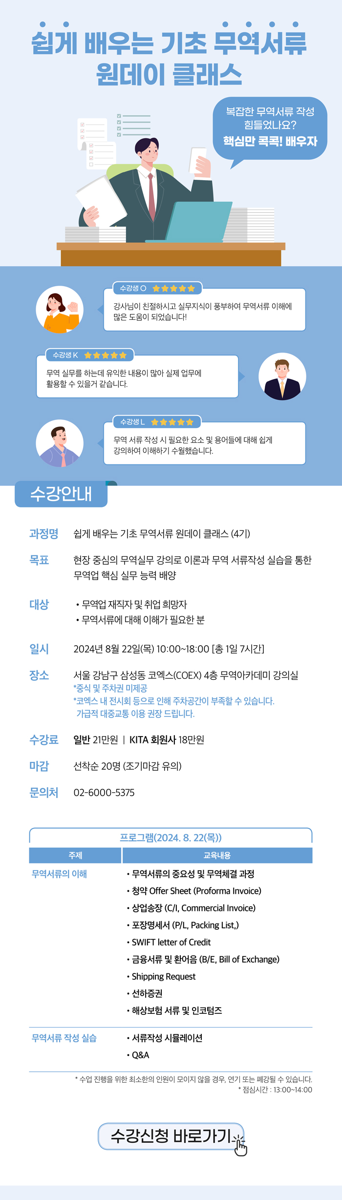 쉽게 배우는 기초 무역서류 원데이 클래스 (★선착순 모집)