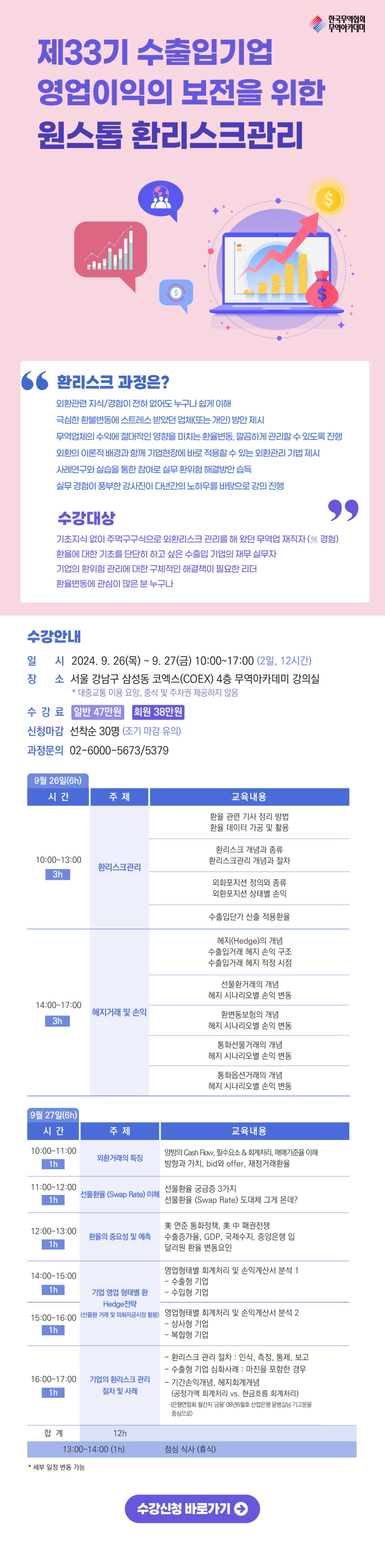 [무역아카데미]제33기 수출입기업 영업이익의 보전을 위한 원스톱 환리스크관리(9/26-27)수강생 모집중