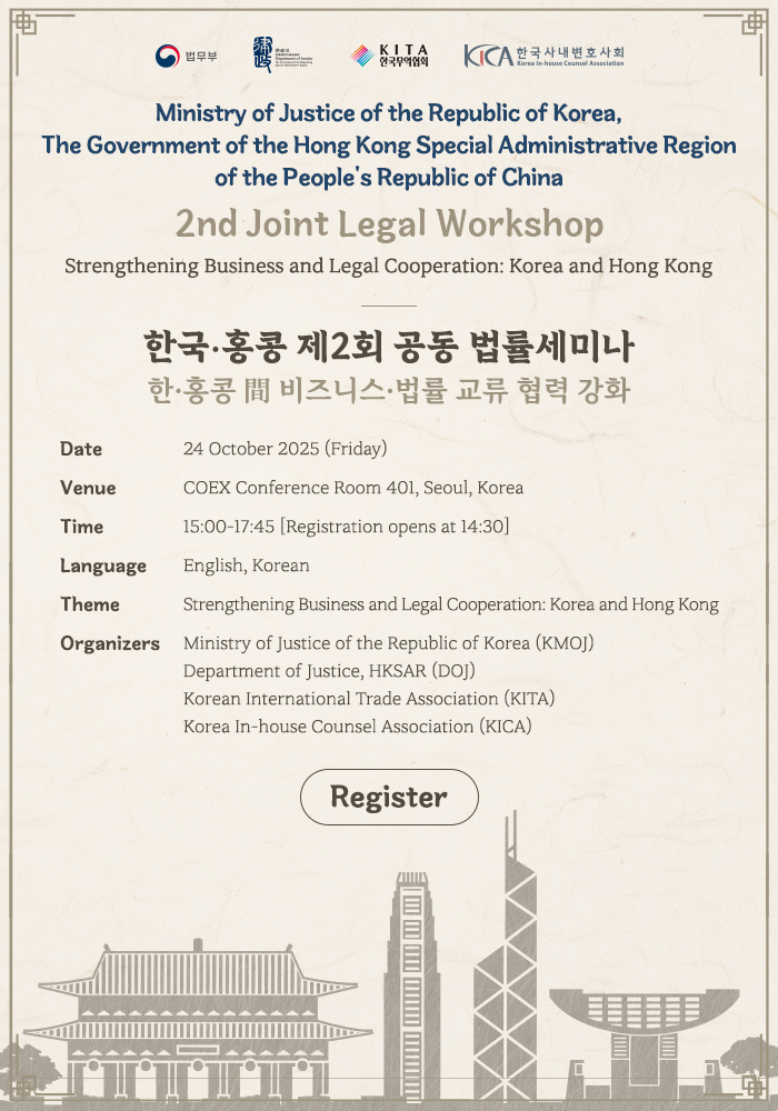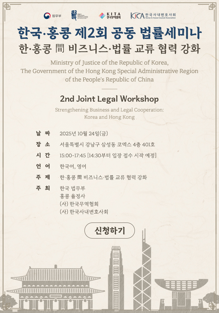제7회 국제법률지원세미나 『한국·홍콩 법무부 제2회 공동 법률세미나』참석자 모집