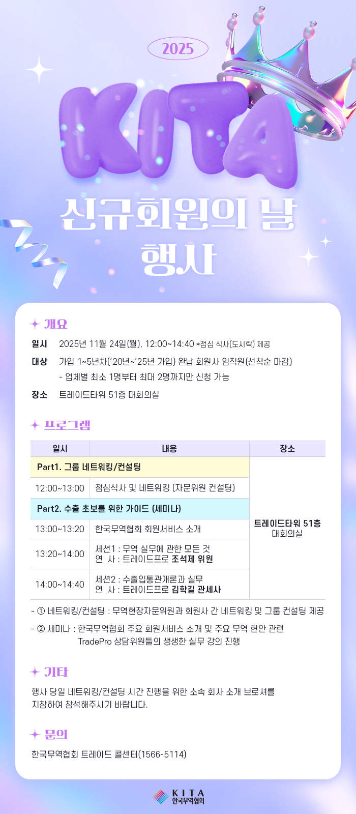 2025년 신규회원의 날 참가기업 모집 (11.24(월) 12:00 ~ 15:00 / 20년~25년 가입 완납 회원사)