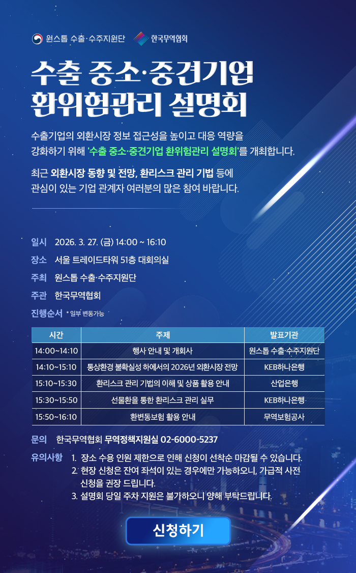 수출 중소·중견기업 환위험관리 설명회 (3/27 14:00)