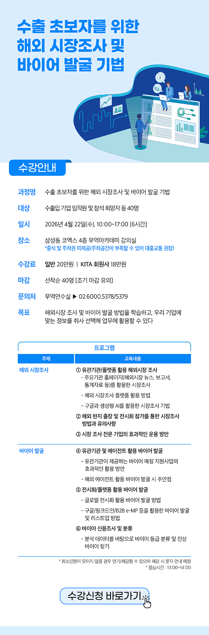 ② 무역 데이터ㆍAI 플랫폼 활용한 바이어 발굴 실무 (3/25, 선착순) : 바로가기 (조기마감예정!)