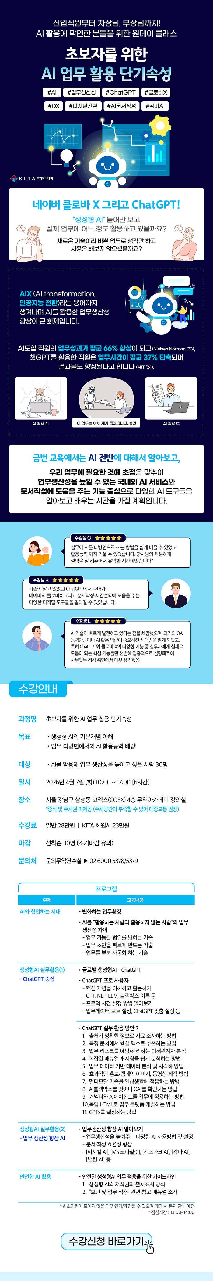 ② AI 도구로 만드는 이메일 뉴스레터 제작 실무 (3/27) : 바로가기(조기마감)