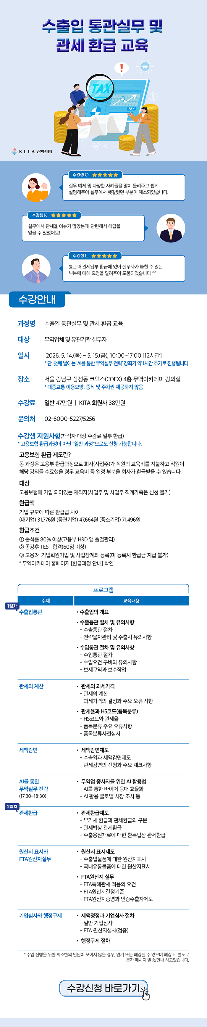 [무역아카데미] 수출입 통관실무 및 관세 환급 교육(고용부환급★5/14~15) 수강생 모집