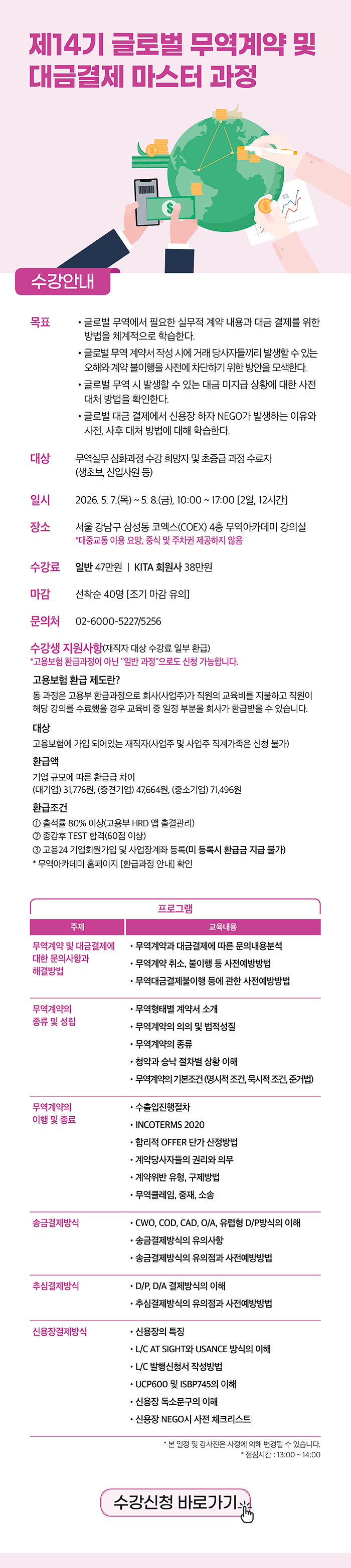 ★[무역아카데미] 글로벌 무역계약 및 대금결제 마스터 교육(고용부 환급과정, 5/7~8) 선착순 모집!